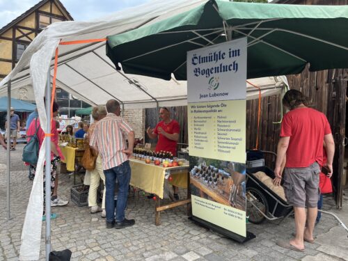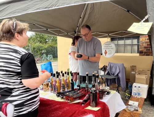 “War das ein schönes Fest” oder “So viele leckere Sachen” oder “So schöne Gespräche”. Das sind nur einige Zitate von Gästen und Ausstellern des Apfelfestes. Der Besucherstrom schien gar nicht abzureißen, es gab spontane Tanzeinlagen, Live-Musik aus dem alten Tanklager und in der Ausstellung herrschte großer Andrang. Die klitzekleinen Regentropfen störten überhaupt nicht und um 16 Uhr waren so gut wie alle Leckereien ausverkauft.
