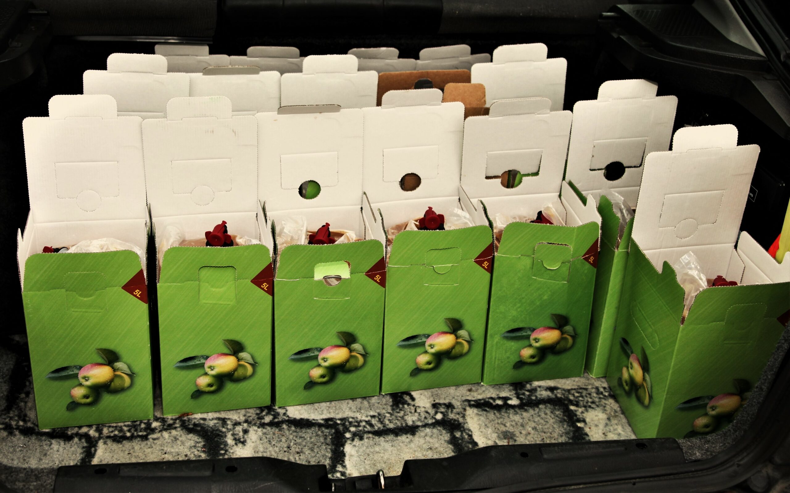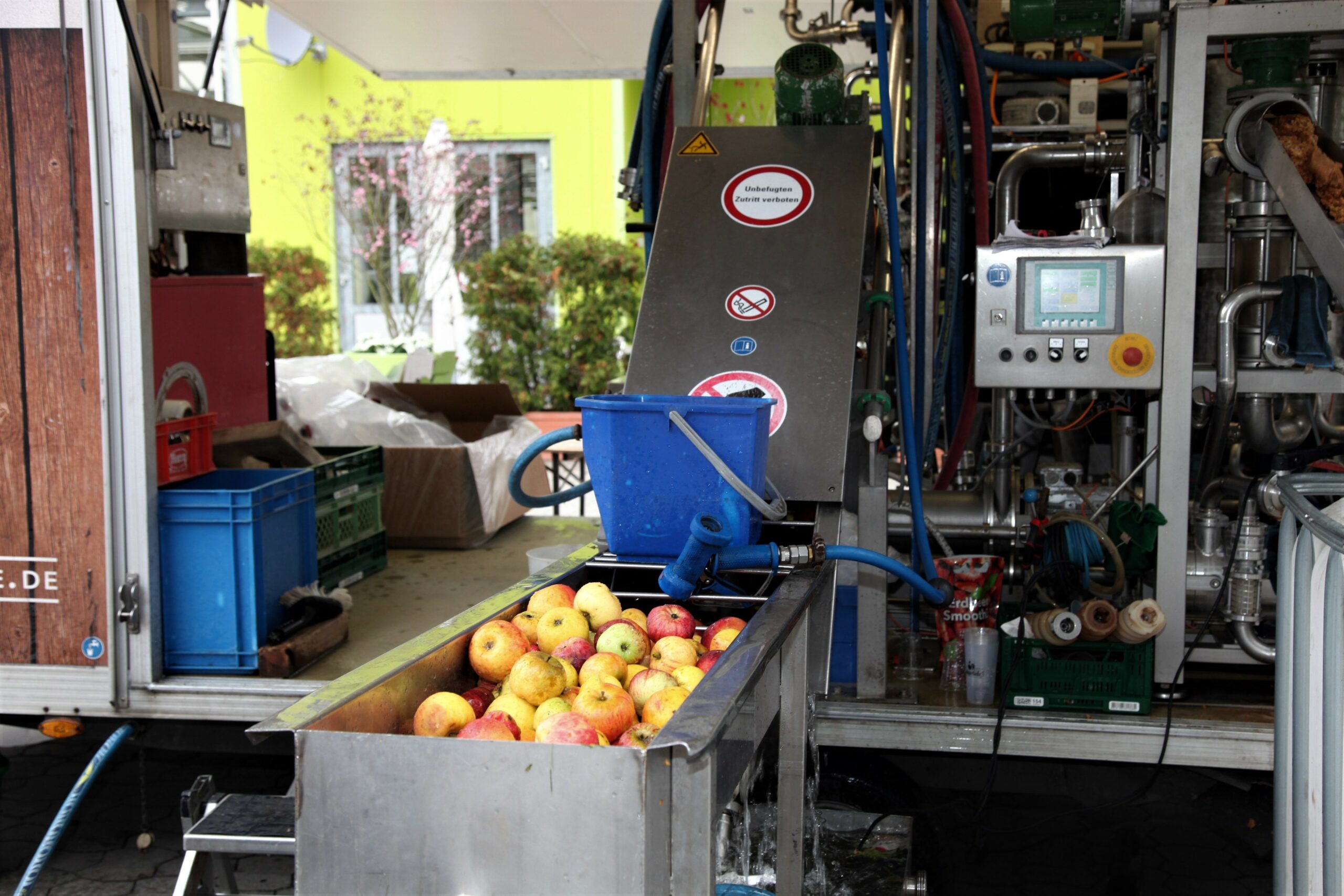Wie in den guten alten Edener Zeiten verarbeiten auch wir unser Fallobst zu Apfelmus, essen täglich einen Apfel, backen leckeren Apfelkuchen und bringen unsere Früchte in eine mobile „Mostquetsche“, allerdings einige Kilometer von Eden entfernt, von der wir aber den gepressten Saft unserer eigenen Äpfel erhalten.