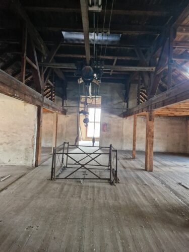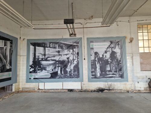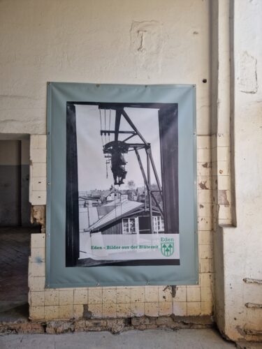 Die Produktionshalle des einstigen Eden-Betriebes auf dem Gelände der Alten Mosterei stand lange leer und wurde in diesem Jahr für die Silvio-Gesell-Ausstellung genutzt. Nicht nur diese interessante Ausstellung war im Frühjahr dort zu sehen, sondern auch die großformatigen Aufnahmen aus der Blütezeit des Eden-Betriebes in den 1920er und 1930er Jahren, die nun zum Tag des offenen Denkmals wieder präsentiert wurden. Der marode Charme des alten Gebäudes hinterließ sicherlich unterschiedliche Eindrücke auf die Besucher. Auch die obere Etage konnte besichtigt werden. Einzelne Details des einstigen Obstverwertungsbetriebes sind auf den Fotos zu erkennen und ein paar Einzelstücke waren noch direkt zu bestaunen.
