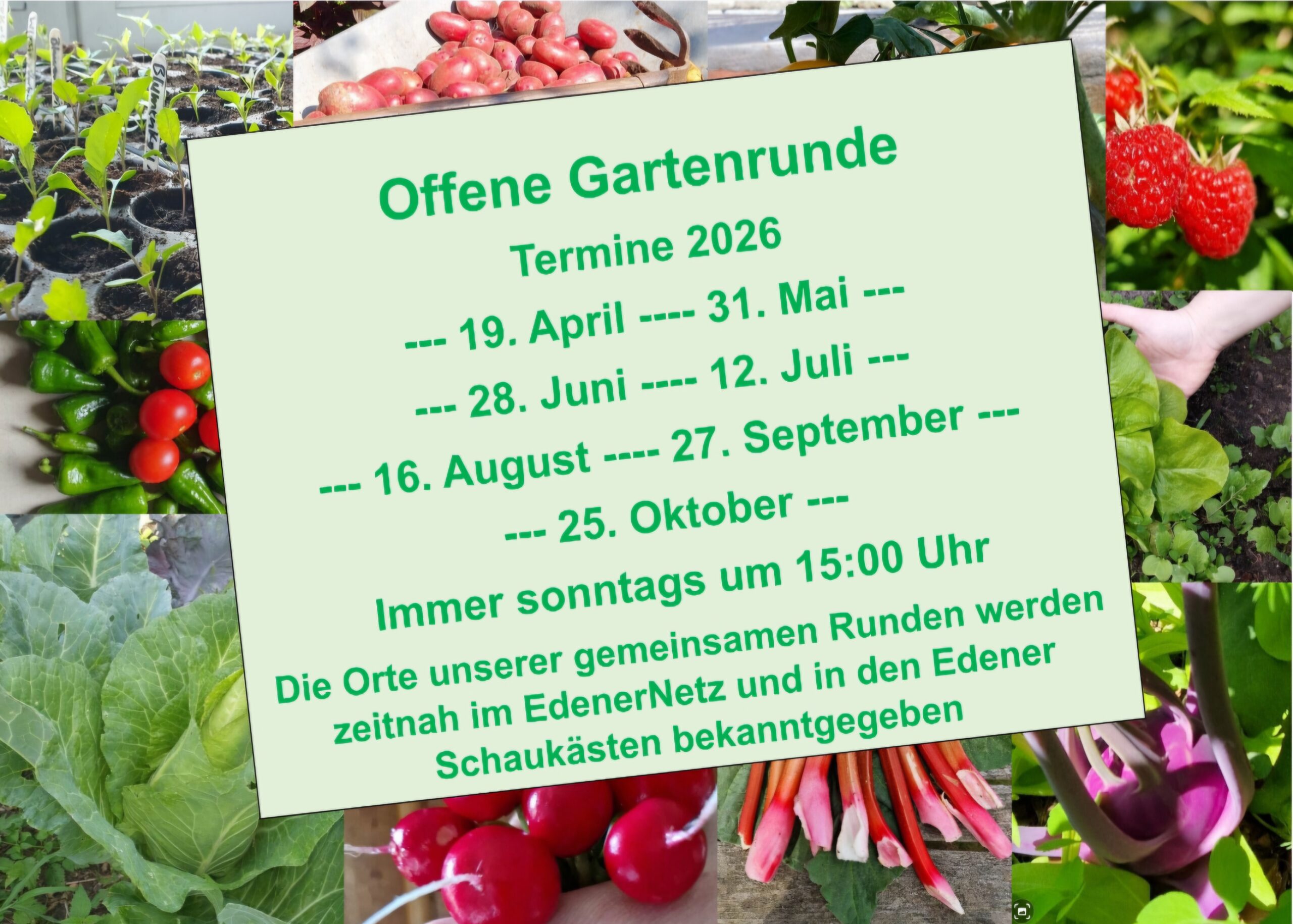 Der Ort und das Thema der Runde werden rechtzeitig im Schaukasten und im Edener Netz